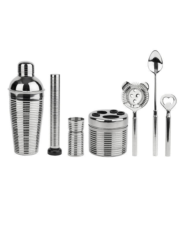French Home Textured Stainless-Steel Barware, Set of 7