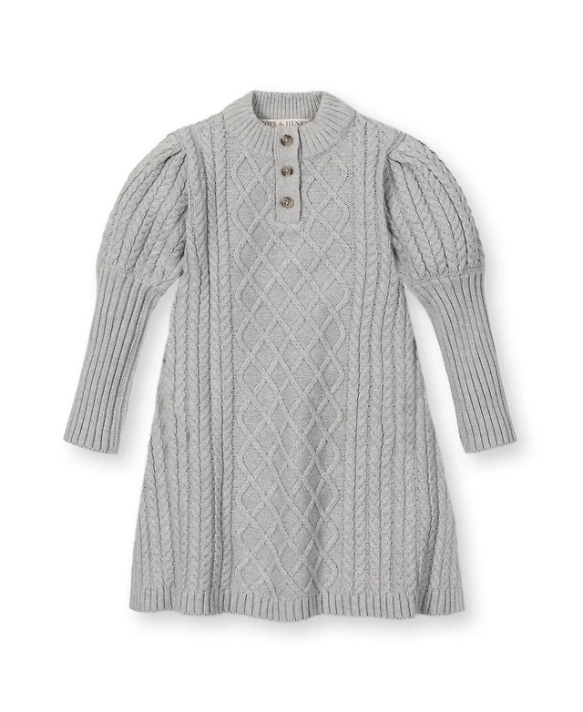 Hope & Henry Little and Big Girls' Organic Long Sleeve Mock Neck Button Placket Sweater Dress