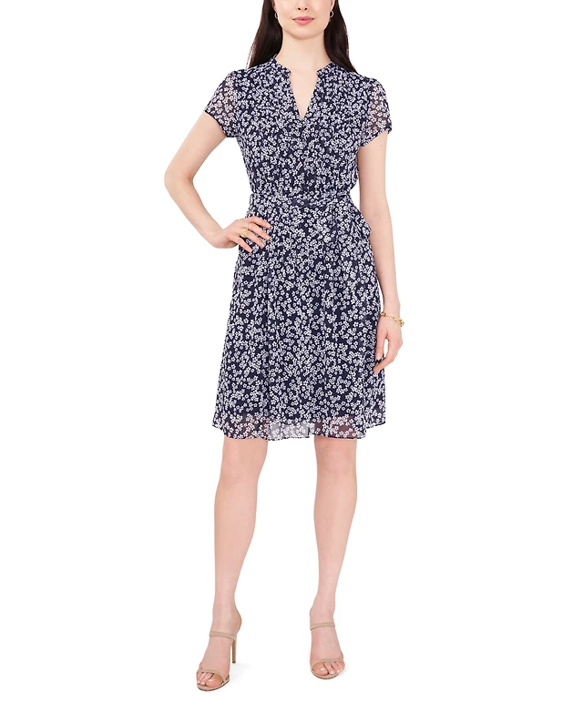 kensie Women's V-Neck Flocked Dress