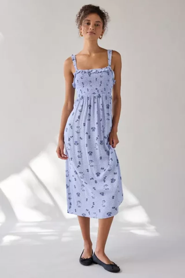 Blouson Sleeve Ruffle Neck Maxi Dress