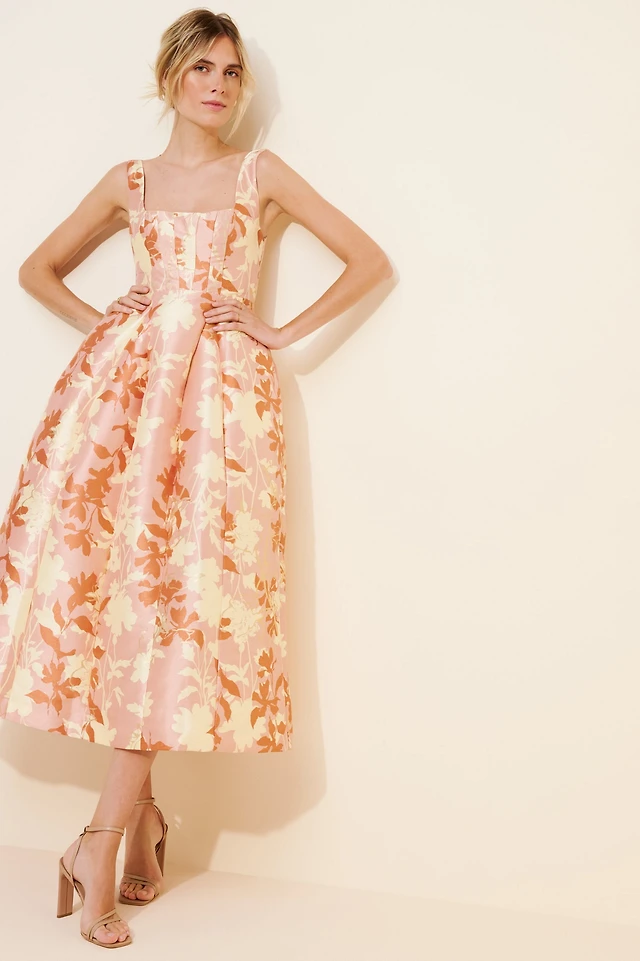 BHLDN Sleeveless Square-Neck Floral Fit & Flare Midi Dress