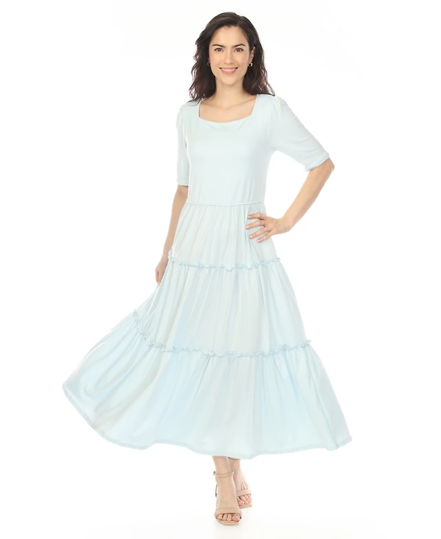 Maeve Smocked V-Neck Half-Sleeve Tiered Midi Dress