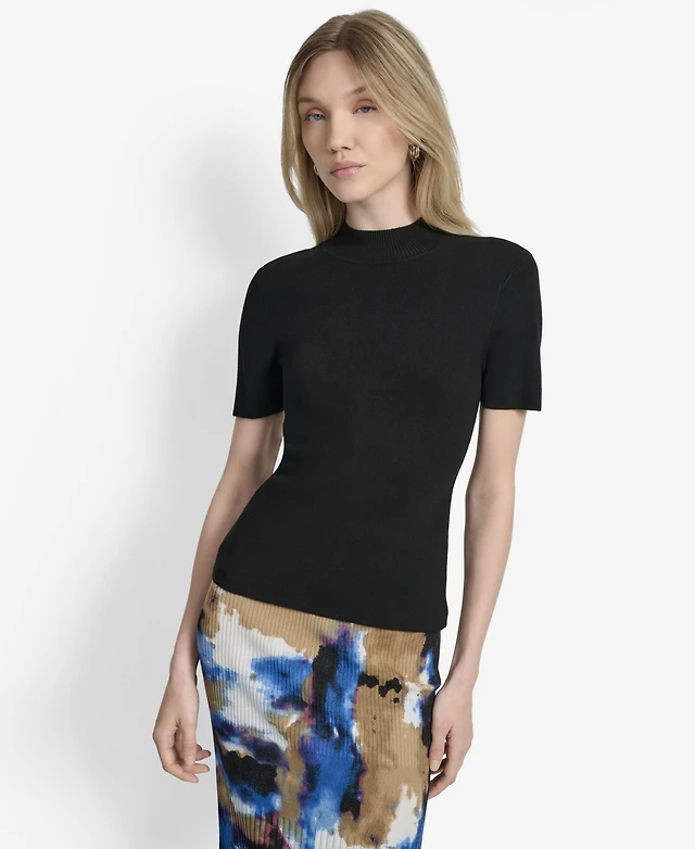 Dkny Women's Printed Mock-Neck Short-Sleeve Sweater