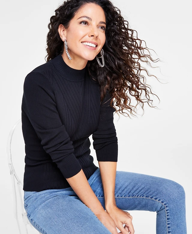 I.n.c. International Concepts Women's Detail Ribbed Mock Neck Sweater, Created for Macy's