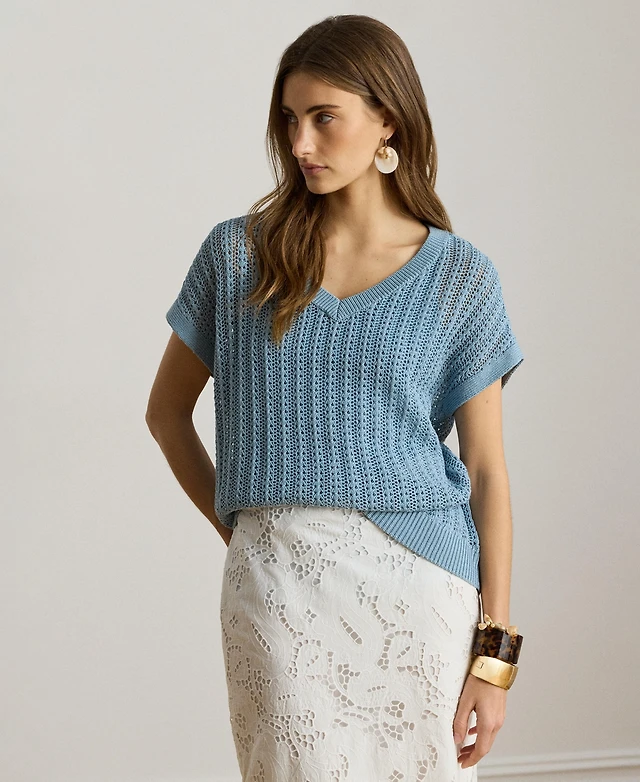 Polo Ralph Lauren Women's Cable-Knit Cotton V-Neck Sweater