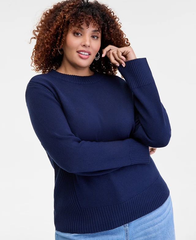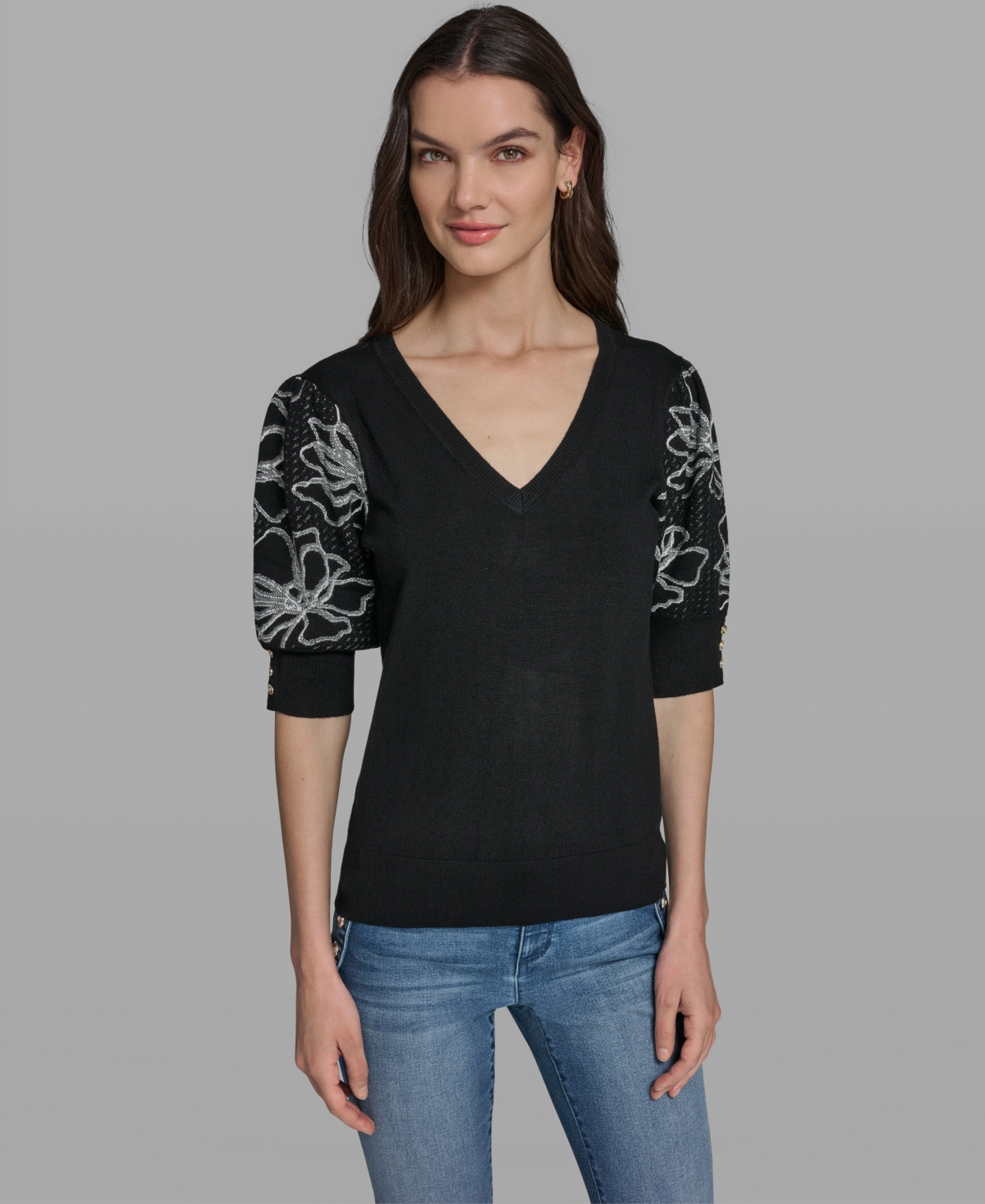 Hope & Henry Women's Long Sleeve Pointelle Sweater with Bellow Sleeves