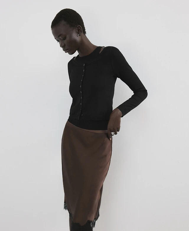 Mango Women's Lace Accents Short-Sleeved Knitted Sweater