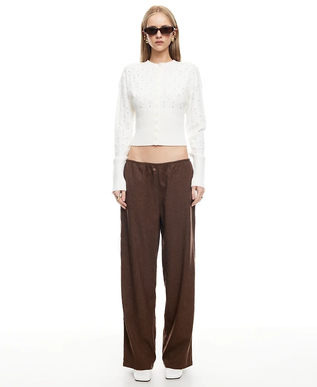 Petite Sequin Pointelle Ribbed Relaxed Sweater