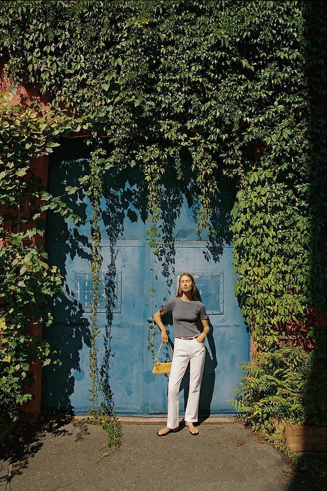 Jennie Liu Women's Funnel Neck Short Sleeve Sweater | 75% Merino Wool 25% Silk Ultra Soft Fine-gauge Knit Top Machine Washable