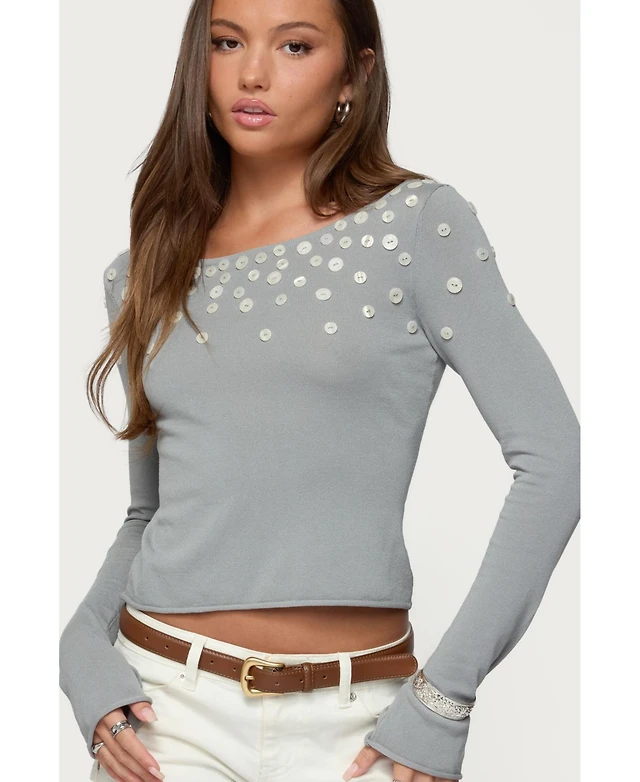 KNIT SWEATER WITH JEWEL BEADING