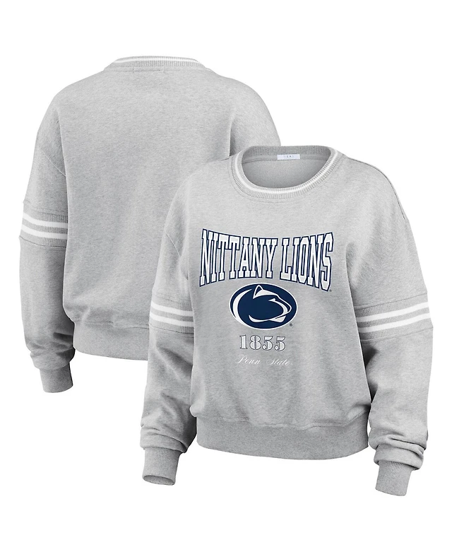 Women's Pressbox Heathered Gray Oklahoma Sooners Big Team Logo Knobi Fleece Tri-Blend Crew Neck Sweatshirt