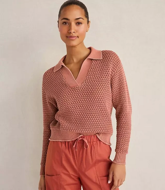 Open-Stitch Cotton Pullover Sweater