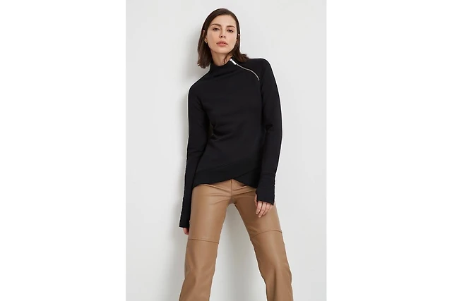 Ella Rafaella Plus Snap Trim Stripe Asymmetrical Sweater