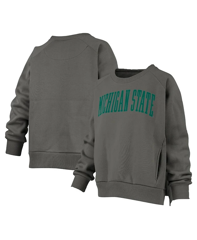 Pressbox Women's Charcoal Michigan State Spartans Pocketed Raglan Pullover Sweatshirt