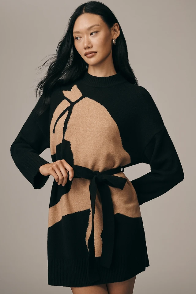 By Anthropologie Long-Sleeve Embellished Sweater Mini Dress