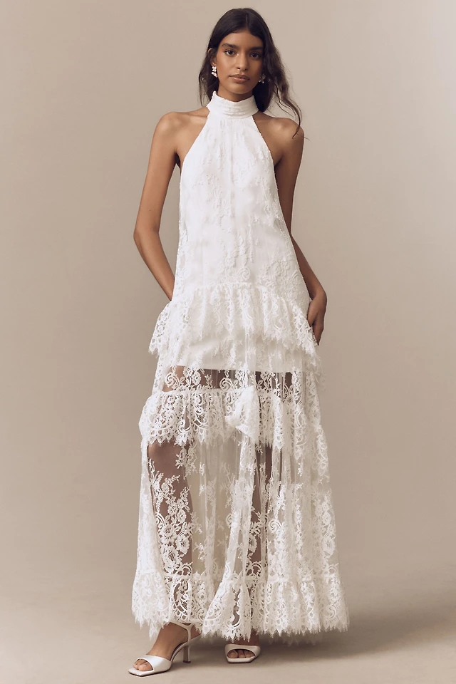 Shona Joy Clemence Chiffon High-Neck Midi Dress