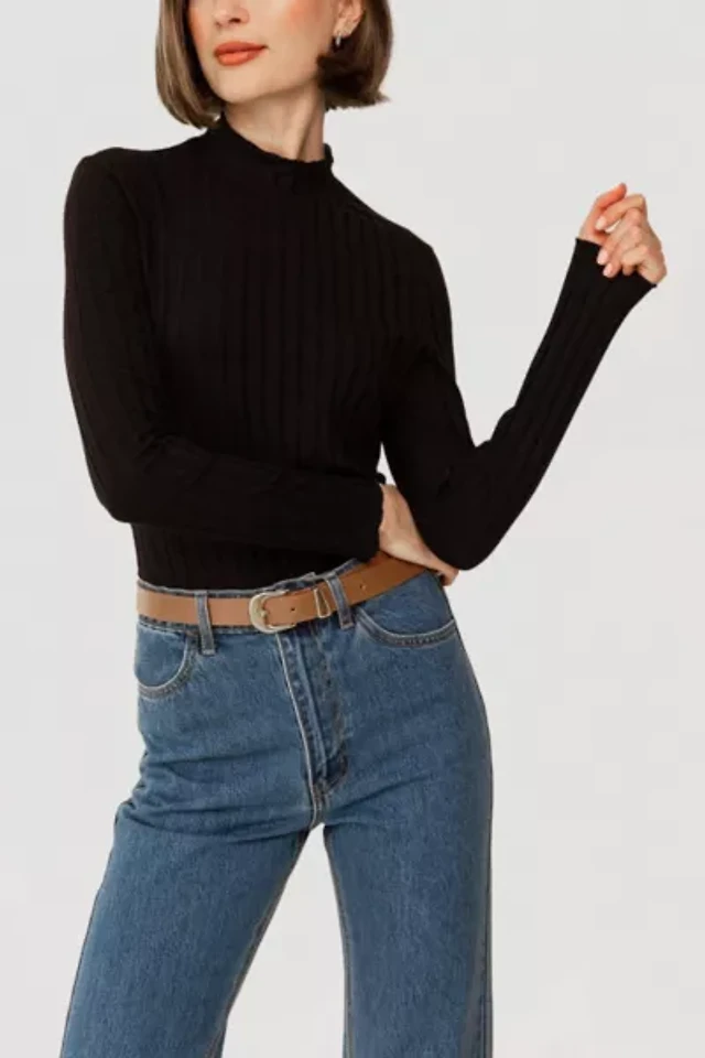 Hope & Henry Women's Organic Mock Neck Bodice Stitch Sweater Dress