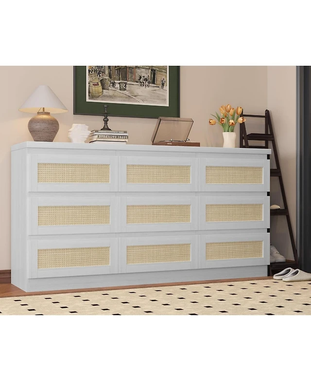 gaomon Rattan 9 Drawer Charging Station Dresser