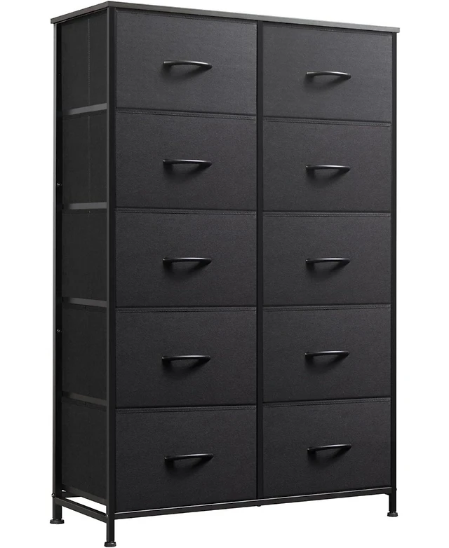 5 Drawer Storage Chest With Wood Top & Dark Fabric Pull Drawers