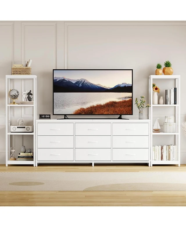 gaomon 8-Drawer Minimalist White Dresser with Led & Power Outlet, 55" Tv Stand, Deep Storage Cabinet
