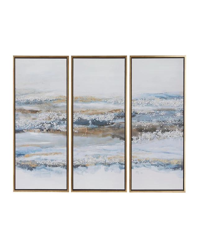 Rosemary Lane Canvas Abstract Ocean Inspired Landscape Framed Wall Art with Silver-Tone Frame, 37" x 1" x 37"