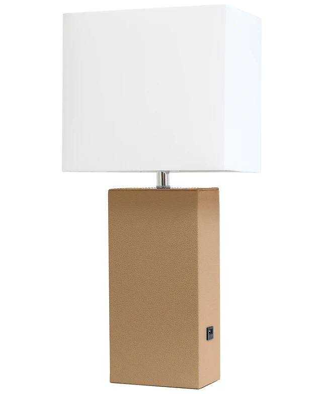 Elegant Designs Modern Leather Table Lamp with White Fabric Shade