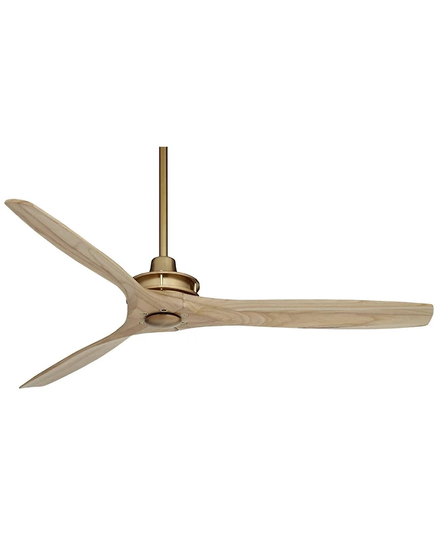 Casa Vieja 52" Windspun Modern Indoor Ceiling Fan 3 Blade Remote Control Soft Brass Finish Natural Wood Blades Bedroom Living Room