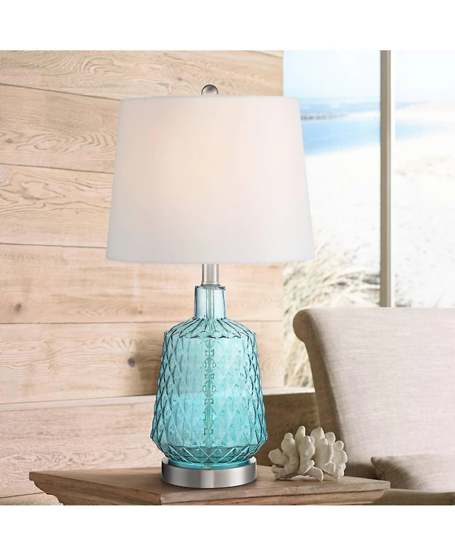 Possini Euro Design Pablo Modern Table Lamp 27" Tall Blue Art Glass White Tapered Drum Shade for Bedroom Living Room Bedside Nightstand Office Fa
