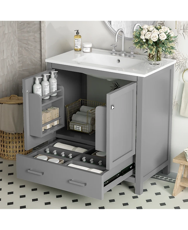 Casainc 32" Bathroom Vanity with White Ceramic Sink & Faucet,Freestanding Bathroom Cabinet with 2 Storage Doors and Open iron Shelf