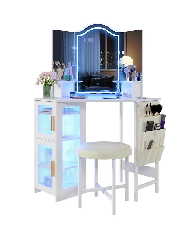Simplie Fun Stylish Vanity Table Set with Led Mirror