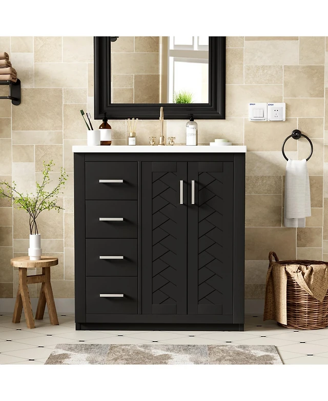 Casainc 36" Bathroom Vanity with Sink, Cabinet Drawers and Solid Frame, One Package