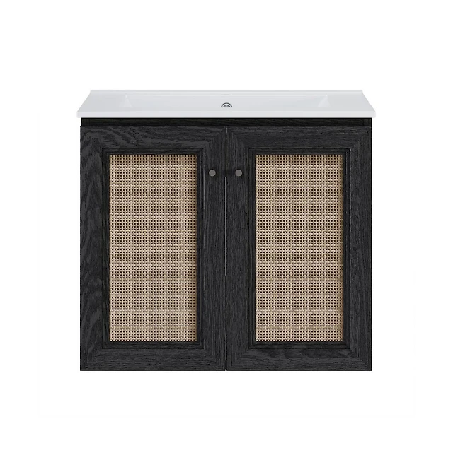 Wall-Mounted Bathroom Vanity with Ceramic Sink & Soft-Close Doors