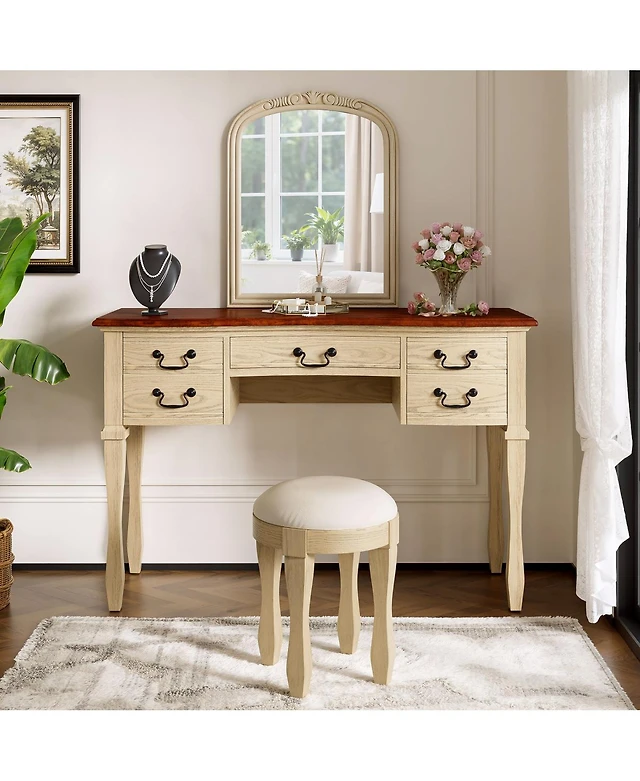 gaomon Vanity Desk with Mirror and Lights, Makeup Vanity Set w/Desk and Stool