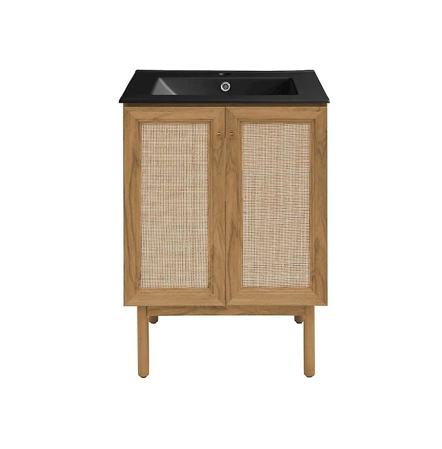 Swiss Madison Cascade 24 in. Natural Oak Bathroom Vanity With Black Ceramic Sink Top