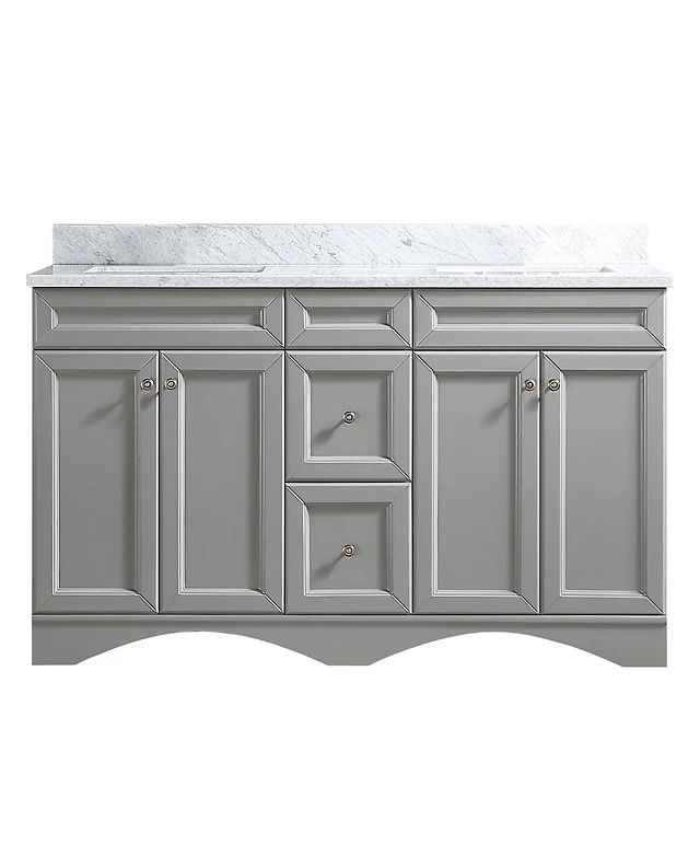 Vanirror 60-Inch Double Bathroom Vanity in Matte White – Solid Wood Cabinet with Marble Countertop and Ceramic Undermount Sink