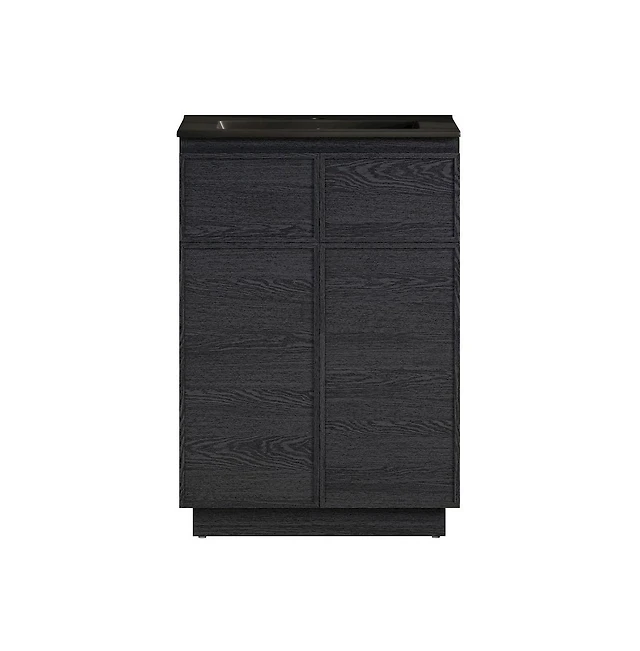 Virage 24 in. Brown Oak Bathroom Vanity With Black, 3-Hole Ceramic Sink Top
