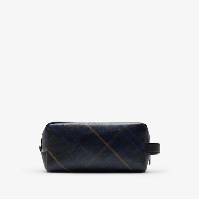 Check Travel Pouch in Midnight - Men, Cotton, Linen | Burberry® Official