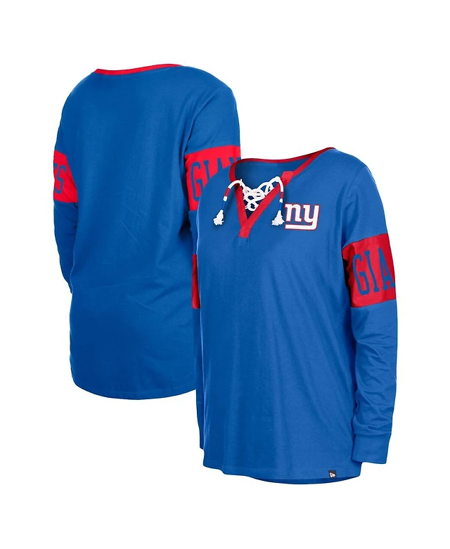 Women's New Era Royal York Giants Lace-Up Notch Neck Long Sleeve T-shirt
