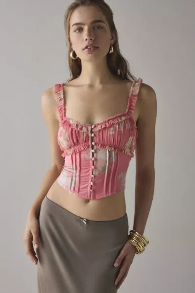 Claudia Ruffle-Trim Cropped Corset Top