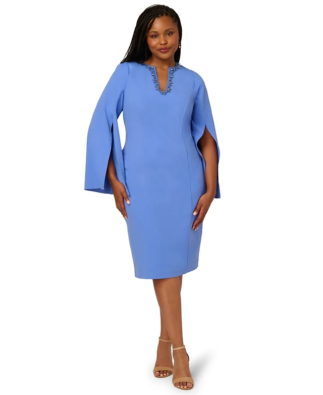 Adrianna Papell Plus Beaded Split-Sleeve Dress