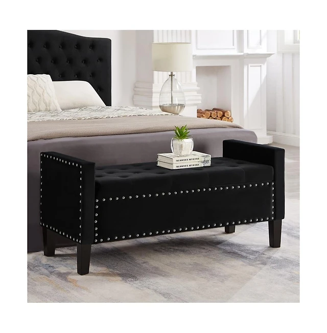 Upholstered Velvet Storage Bench with Nailhead Trim for Entryway, Bedroom & Living Room-The Pop Home
