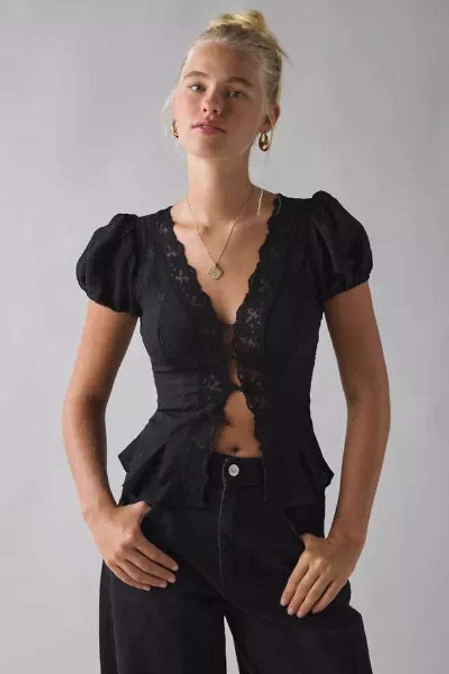 Kimchi Blue Aurelia Lace Trim Puff Sleeve Blouse
