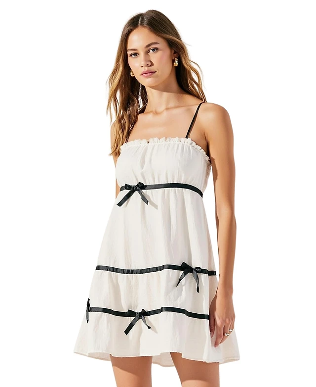 Coast Women's Bow Trim V-Neck Volume Skirt Midi Dress