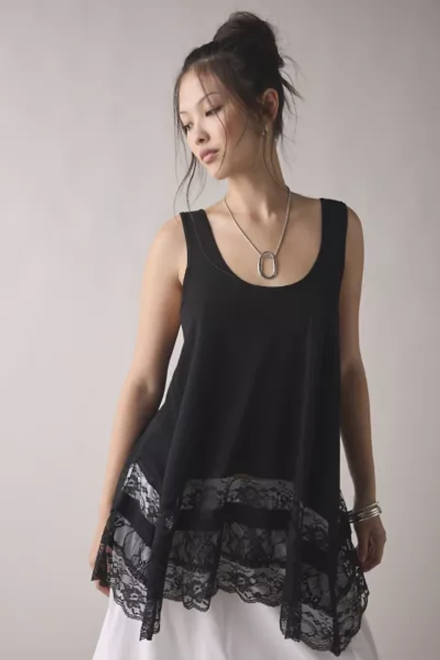 Originality Women's Faux Suede Lace Trim Tank Top