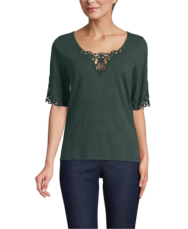 Band of the Free Women's Crochet Trim Peasant Top