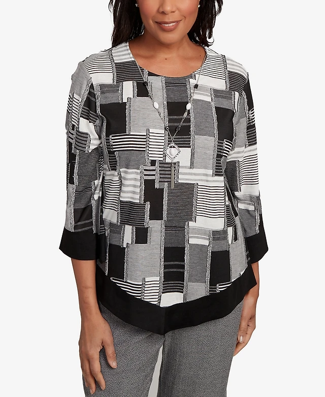 Ny Collection Plus Long Sleeve Crochet Trimmed Blouse