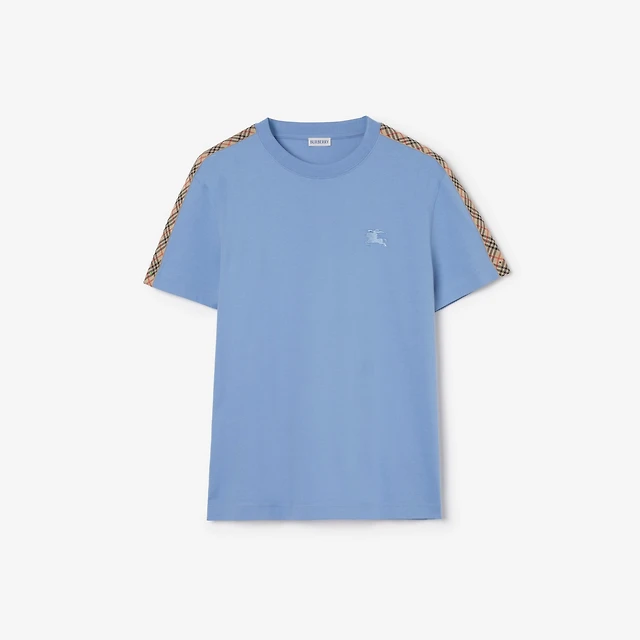 Check Trim Cotton T-shirt in Sparrow beige - Men | Burberry® Official