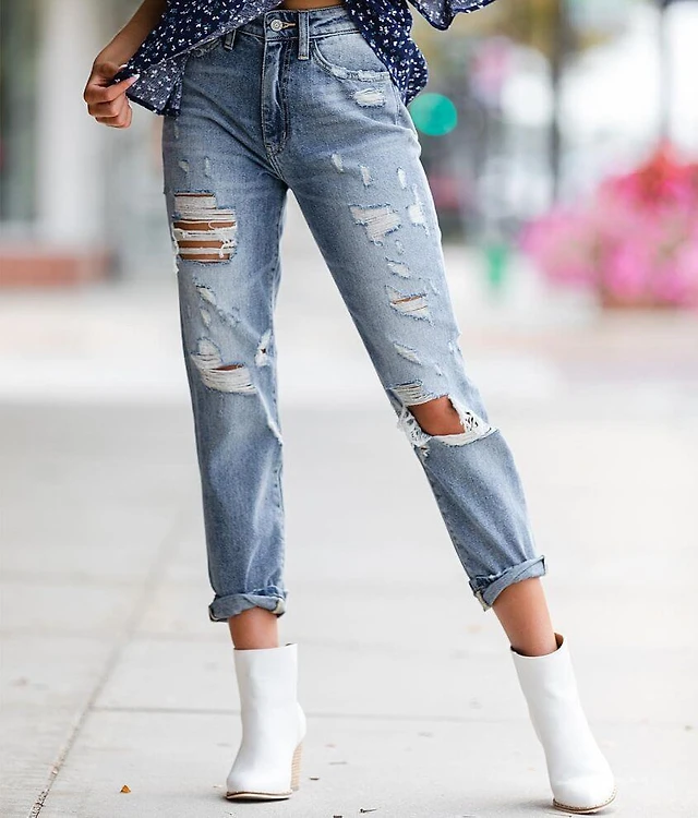 Low-Rise Ripped Light Wash Bootcut Jeans