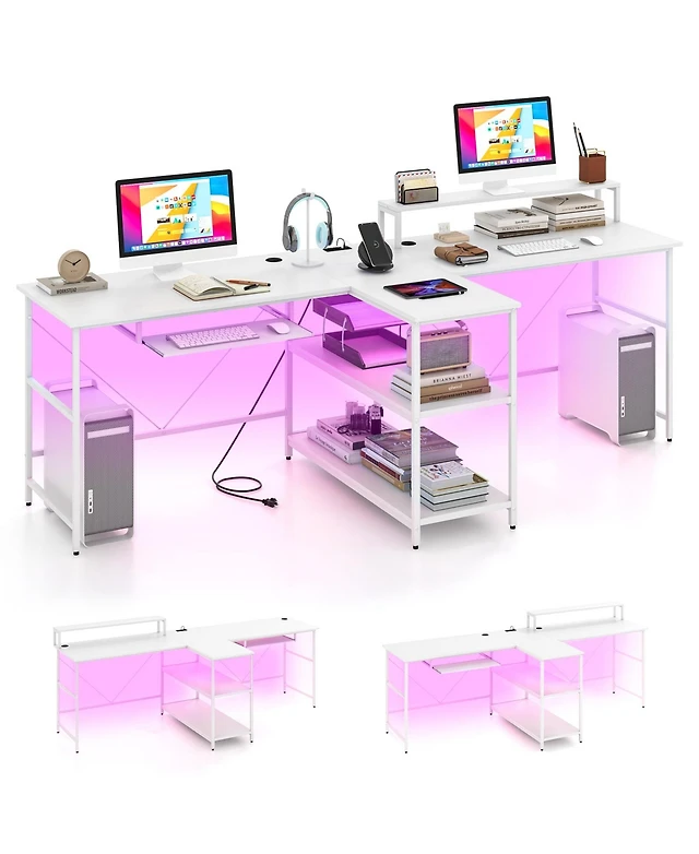 Aheaplus L-Shaped Computer Desk with Drawers and Monitor Shelf, Gaming Desks Led Strip