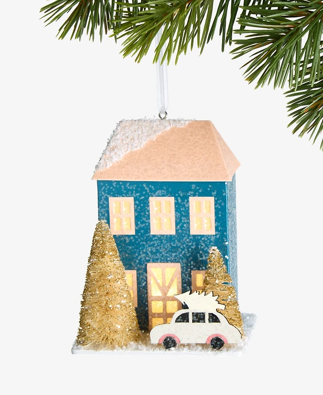 Holiday Lane Led Paper Blue House Ornament, Macy's Exclusive